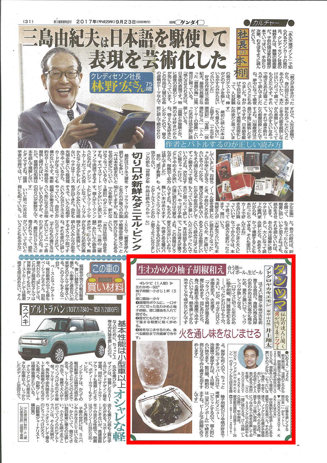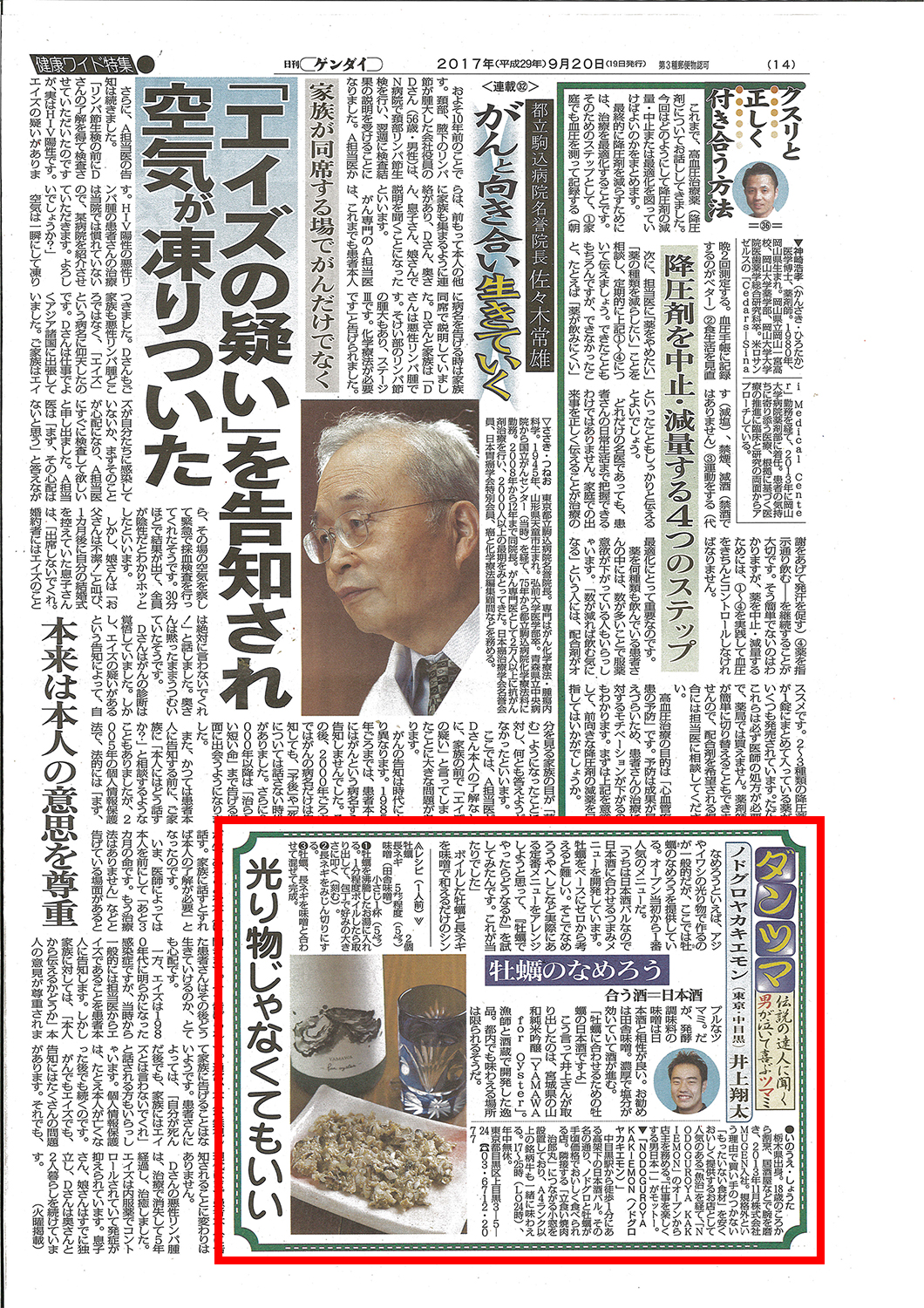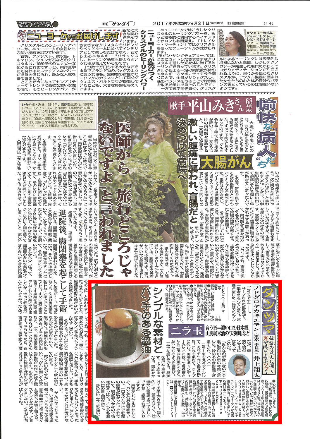 日刊ゲンダイ2017年9月 NODOGUROYA KAKIEMONの逸品が掲載されました。
