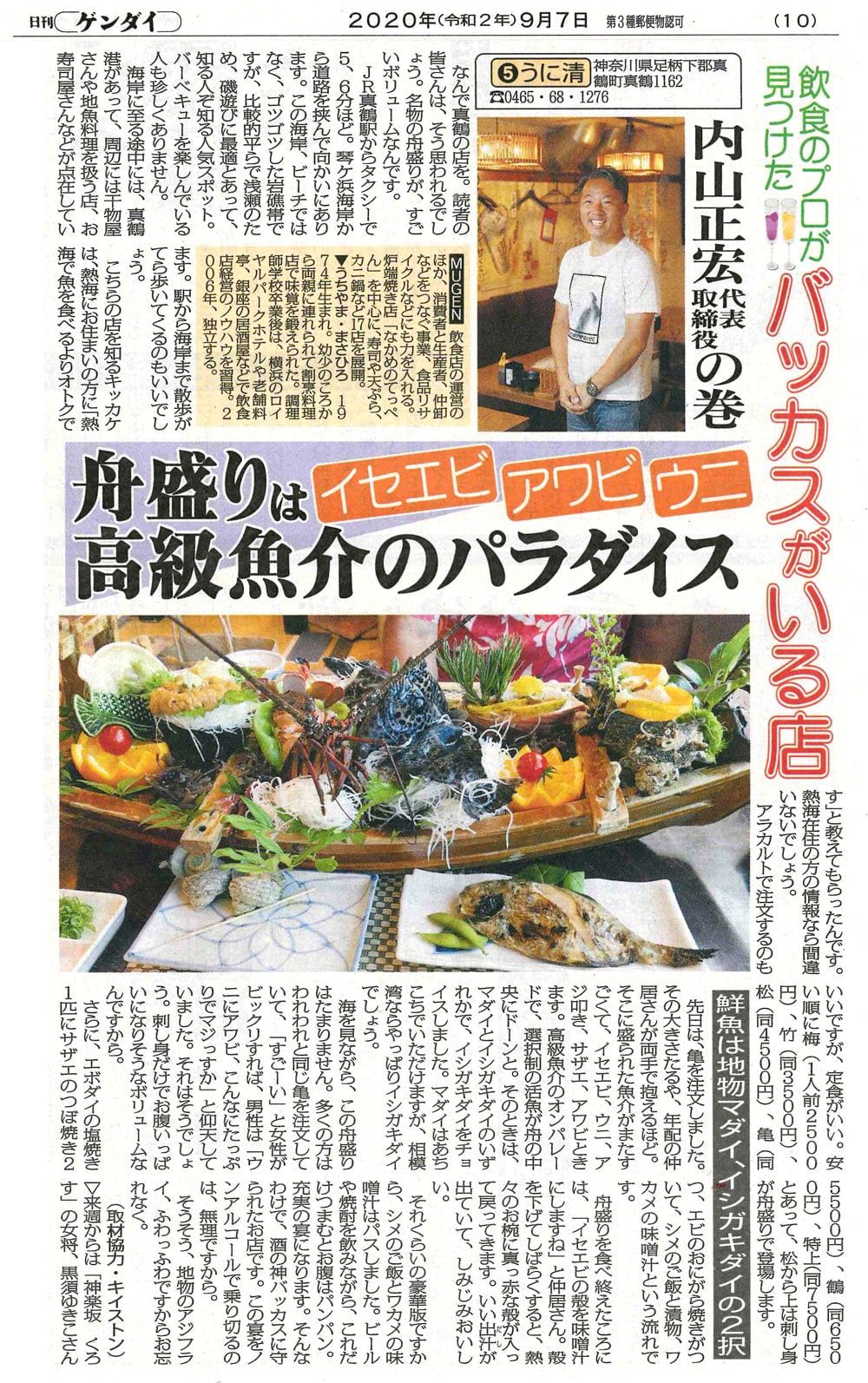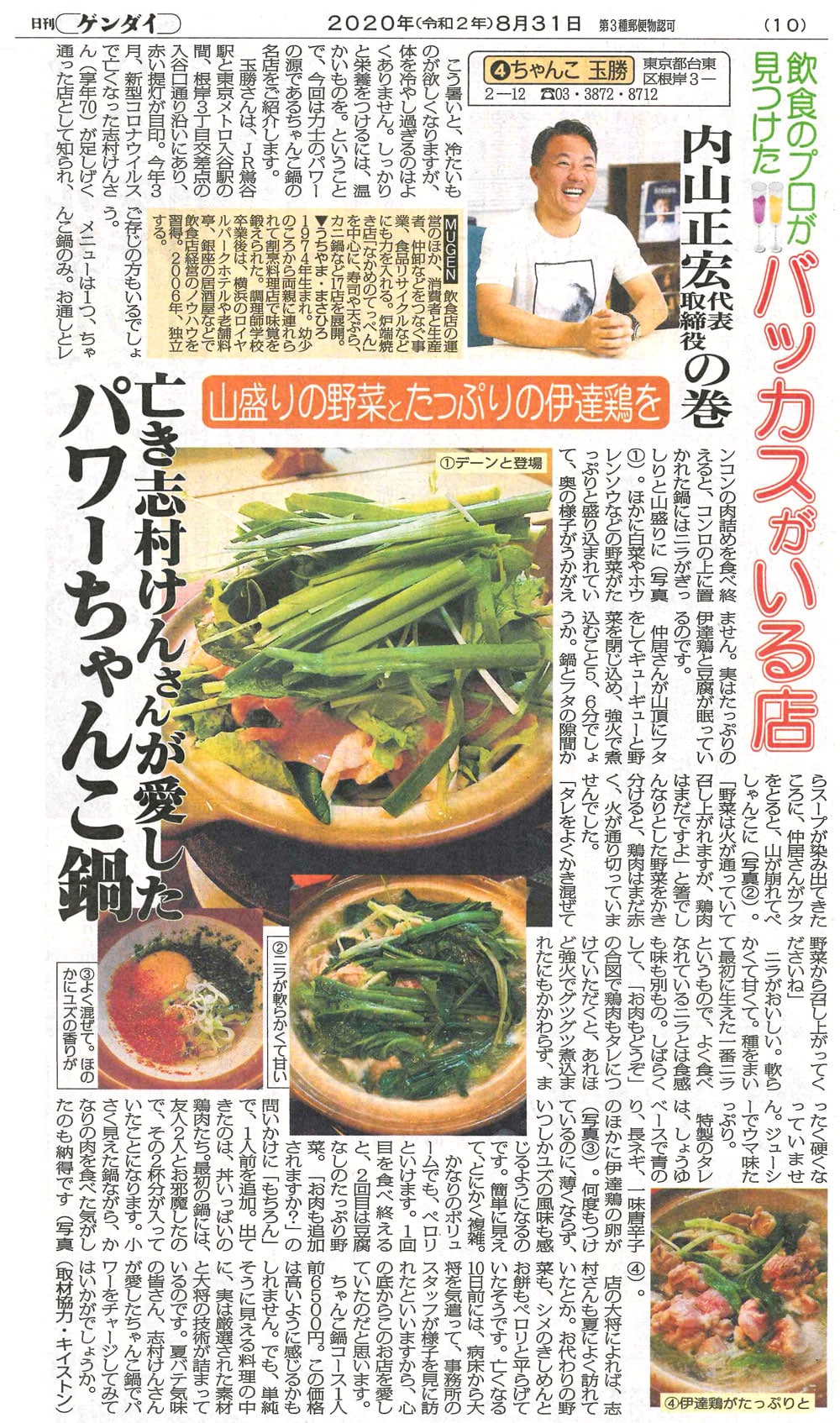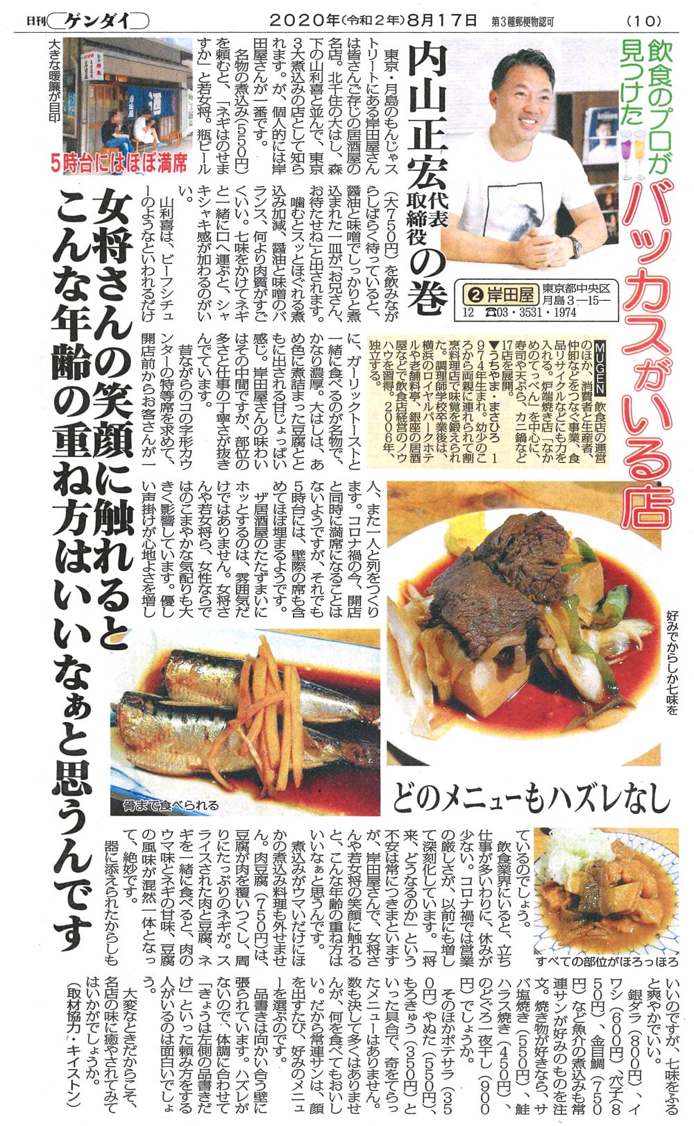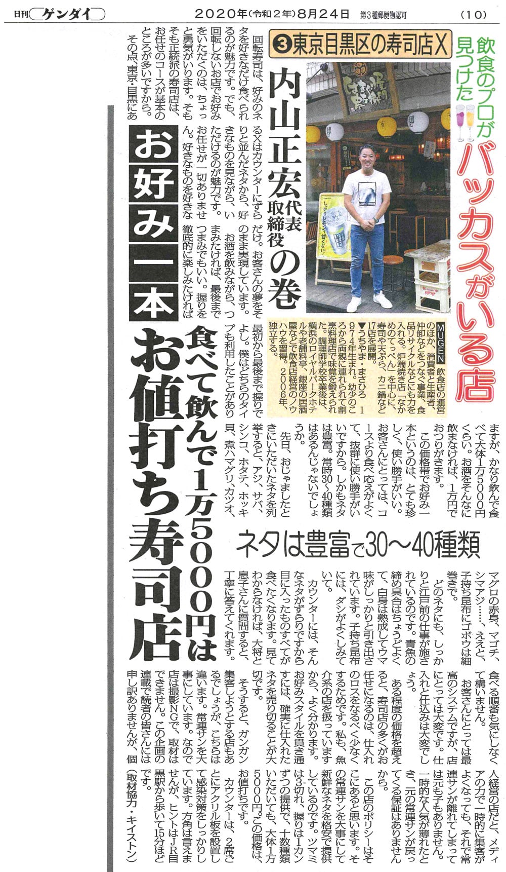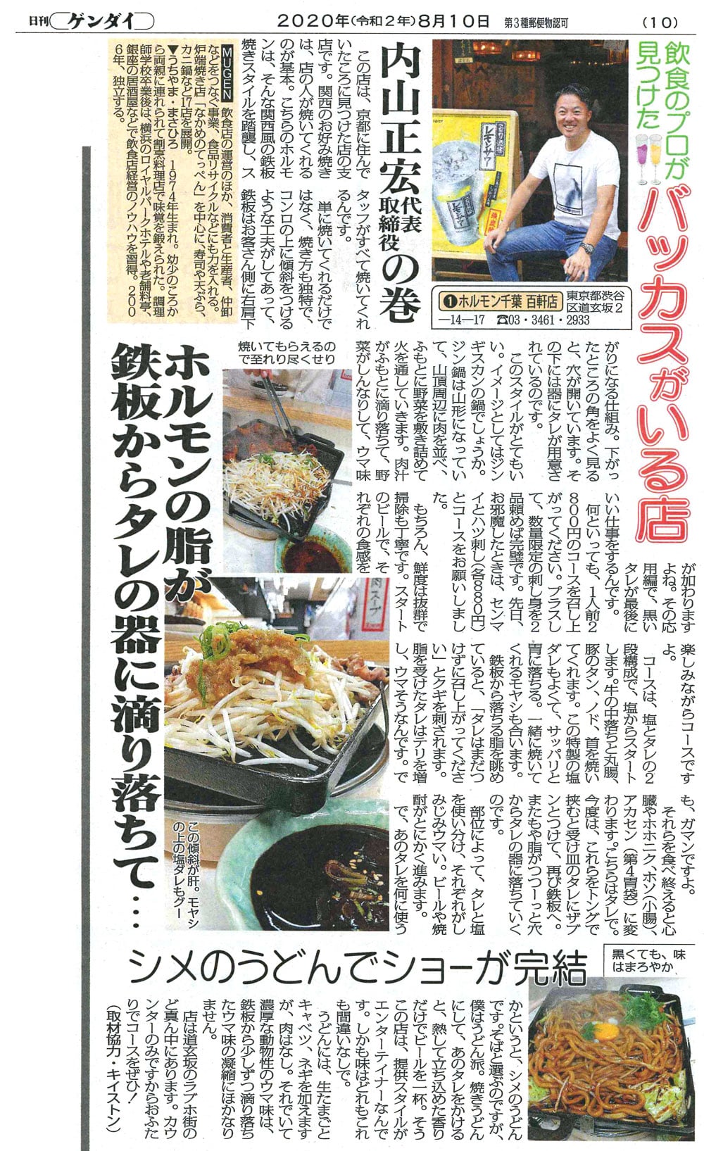 日刊ゲンダイ2020年8月~9月 飲食のプロが見つけたバッカスがいる店に代表内山正宏が出演しました。