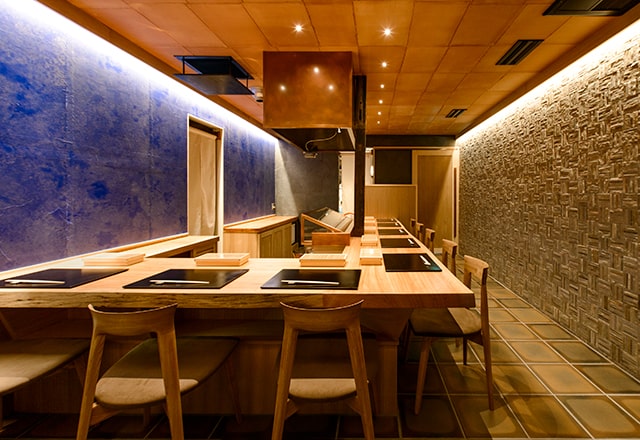 そして、あるとき内山さんに案内されたのが、中目黒にある現在の「天婦羅みやしろ」の物件でした。それは、まさかの築100年の長屋!トタン囲いの外観の、およそ飲食店には見えない古びた建物だったのです。「宮代さん、ここでやったら面白くないですか?」…そう嬉しそうに語る内山さんを見て、改めて常人ではないなと感じました。店づくりに関して私がお願いしたのは、水槽を設置することと、ガス台の高さに関してのみです。内山さんとスタジオムーンの金子さんの力によって、あの古びた外観からは想像もつかないような粋な内装空間が生まれたのです。実際に、初めてご来店されたお客様は、店の外観と内装とのギャップに心から感動されます。内山さんには、この情景が最初から見えていたんですね。自分の店を成功させたいと考える料理人には、その腕前の良さは大前提として、コンセプトや事業計画づくり、物件の選定、店舗のデザインなど、総合的なプロデューサーの協力が必要になるものです。私は幸運にも内山さんに出逢えたことで、自分の力では決して得られなかった好条件でのスタートを切ることができました。