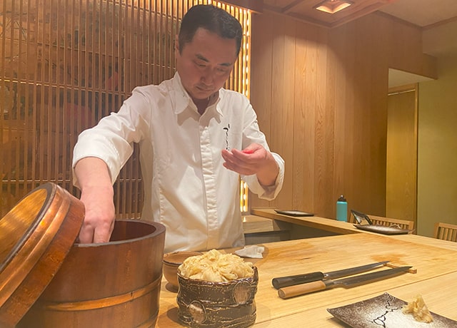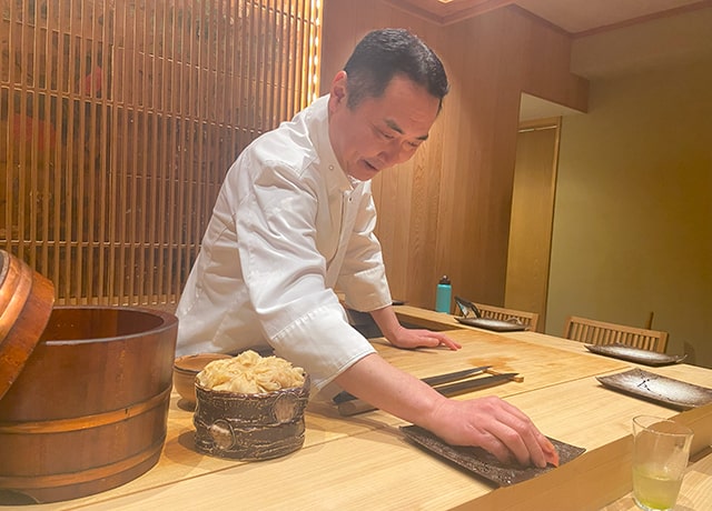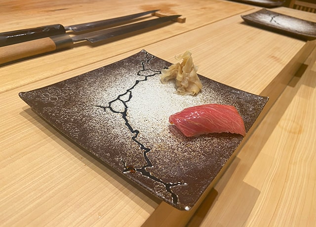 「鮨つきうだ」の立ち上げには、カウンターの長さや高さ、椅子やお手洗いに関するこだわりなど、店づくりから私の意見を反映いただきました。食材の仕入れやメニュー構成については、開店当初からすべて私にお任せいただいています。過去の職場では、私が手がけたメニューが、オーナーの意見で一変してしまうという苦い経験が多々ありました。それでは店主の私が存在する意味もないし、もはや私の鮨ではありません。一方で内山さんは、私がこれまで培ってきた技術や経験を尊重し、料理に関して100%の信頼をくださっています。料理人としての誇りや喜びを胸に仕事ができる有難い環境に感謝し、より一層の研鑽に励みたいと思う日々です。